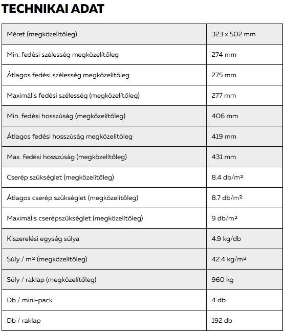Kb. 8,4 db/m² tetőcserép-szükségletével olyan cserepet kínálunk, amely azon túlmutatóan, hogy páratlan minőségről tesz tanúbizonyságot és figyelemreméltóan szép, az ár-teljesítmény viszonyában is új mércét állít fel. Meggyőző továbbá a 25 mm-es eltolhatósági tartomány, illetve a kialakított alsó merevítőbordáknak köszönhető tökéletesített statika.