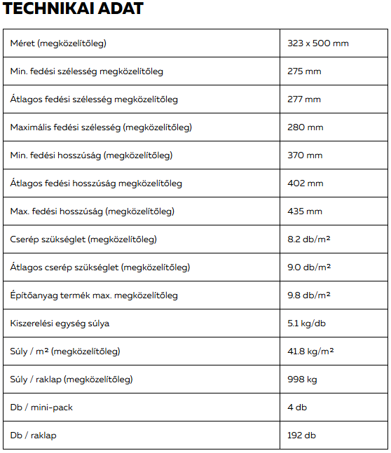 A NOMINA cseréppel enyhén strukturált és szabályos fedésképű tető készíthető. Nagy formátumának köszönhetően gazdaságos megoldás, ami a kiemelkedően nagy, 60 mm-es eltolhatósági tartománnyal kombinálva, rendkívül rugalmas felhasználást tesz lehetővé.