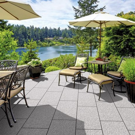 Természetes hatású, finommosott felületű, nemesen egyszerű, gránitszürke színű, terméskőkőzúzalék felhasználásával készült, klasszikus stílusú járólap.