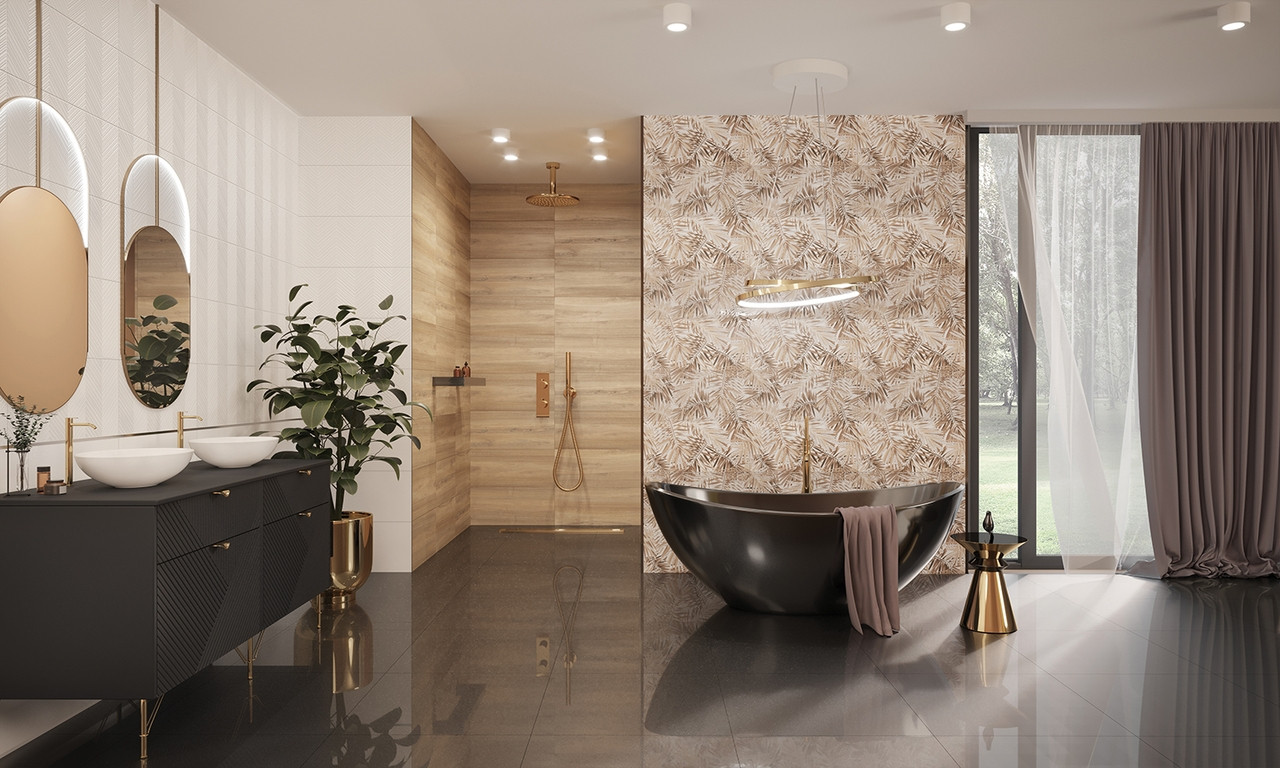 Válassz egyet a Golden Forest dekorlapok közül, és csempéssz egy kis művészi eleganciát a természetes hatású burkolat mellé.